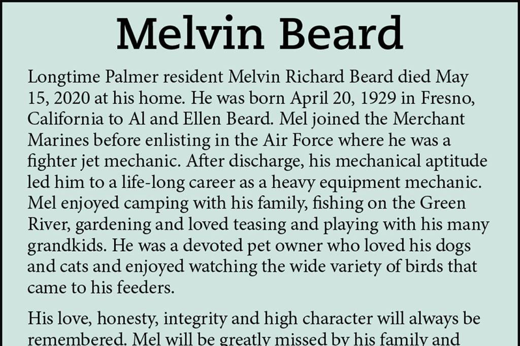 Melvin Beard died May 15, 2020, at the age of 91.