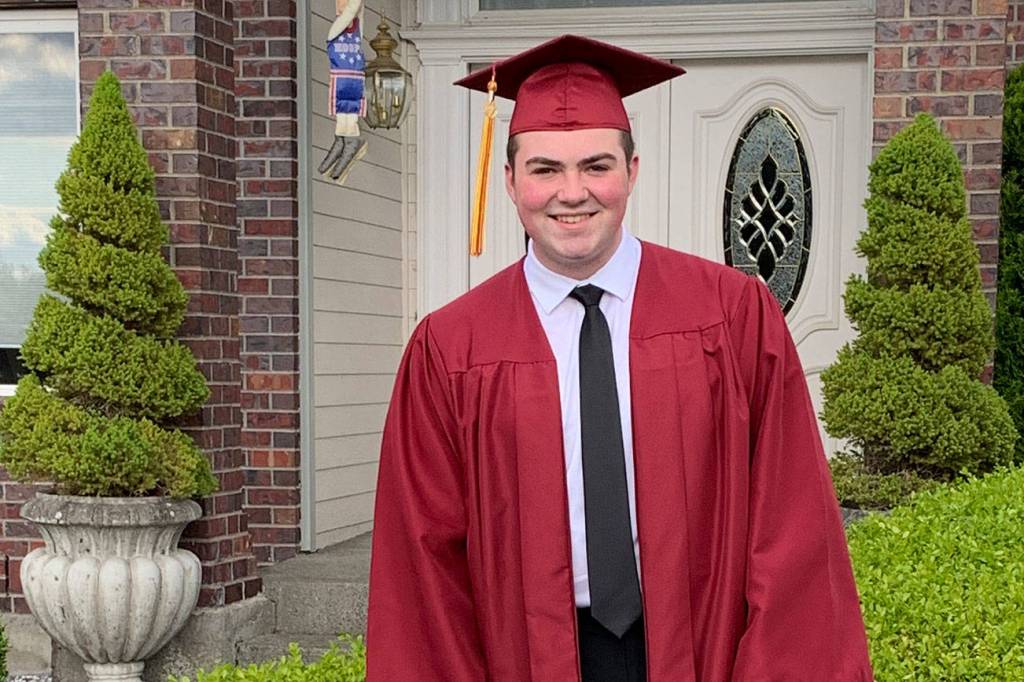 Due to no traditional graduation for the Class of 2020, a member of the scholarship committee presented the scholarship check to Kaden at his home, where he was accompanied by his immediate family, including his grandparents.
