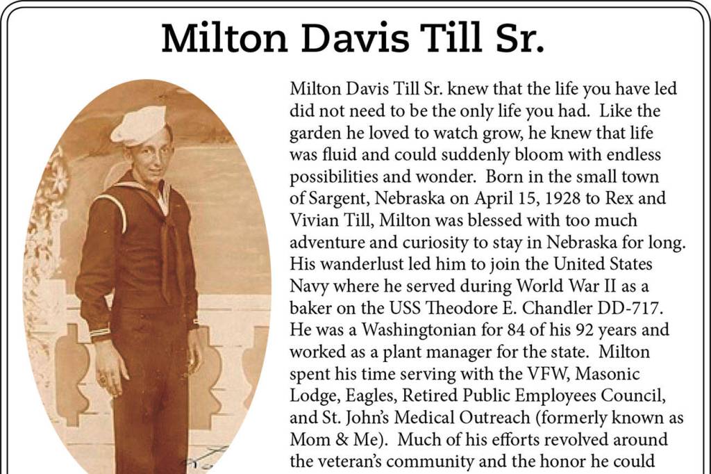 Milton David Till, Sr. died July 21, 2020, at the age of 92.