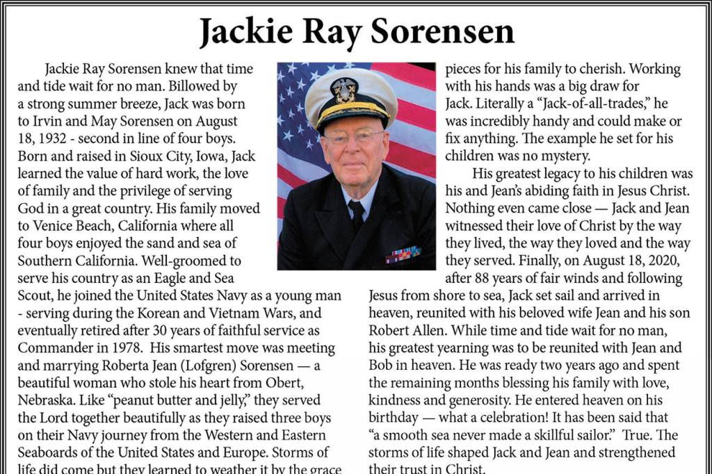 Jackie Ray Sorensen died Aug. 18, 2020, at the age of 88.