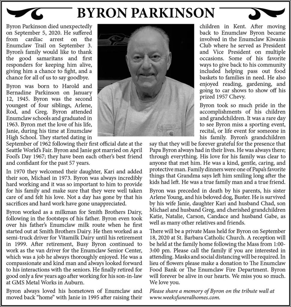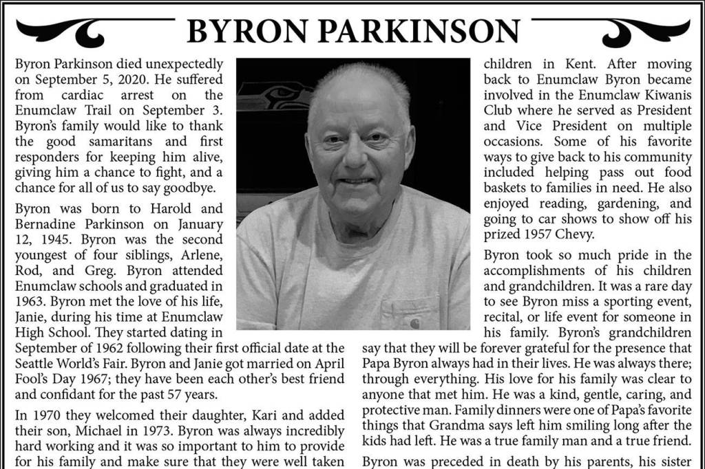 Byron Parkinson died Sept. 5, 2020, at the age of 75.