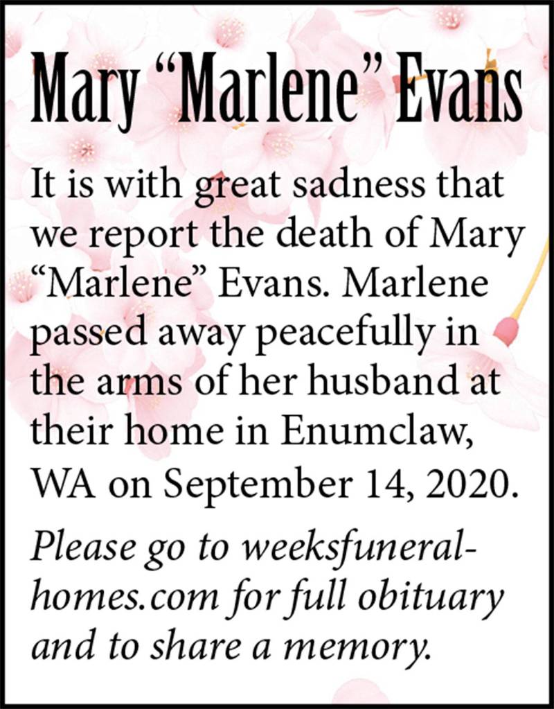 Mary “Marlene” Evans died Sept. 14, 2020.
