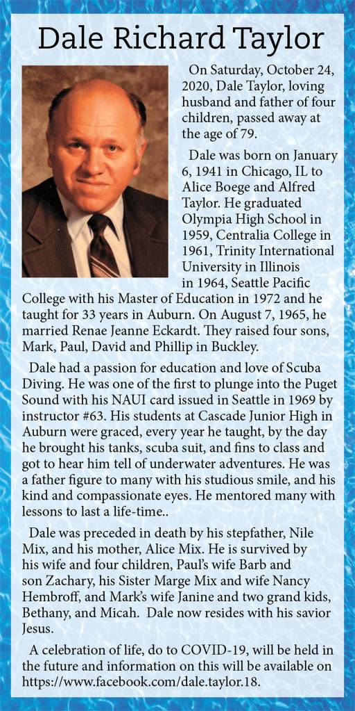 Dale Richard Taylor died Oct. 24, 2020, at the age of 79.