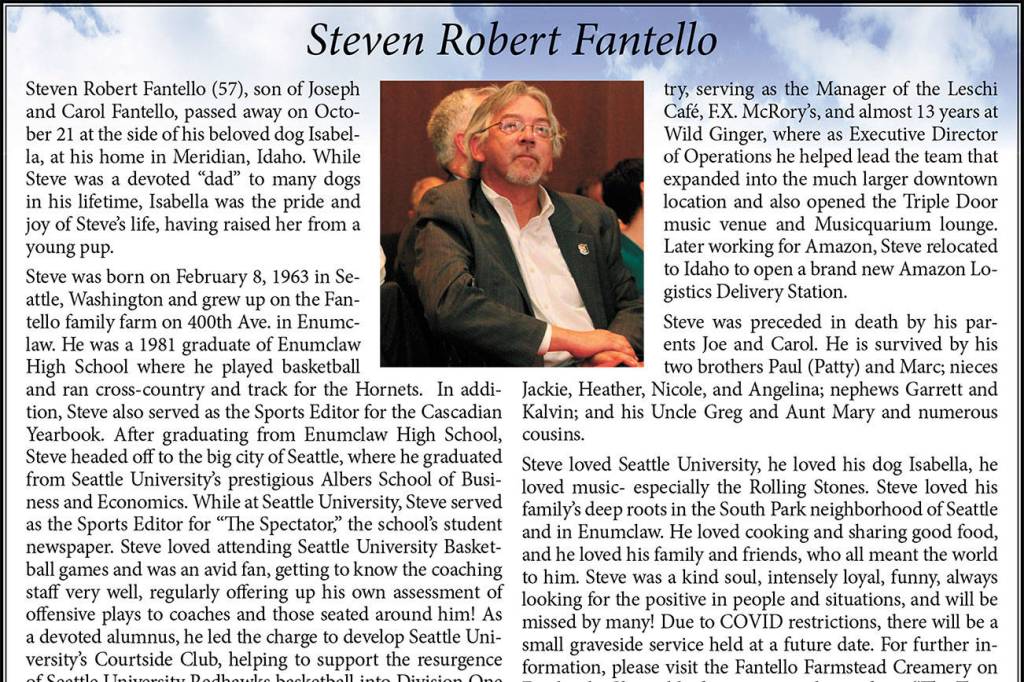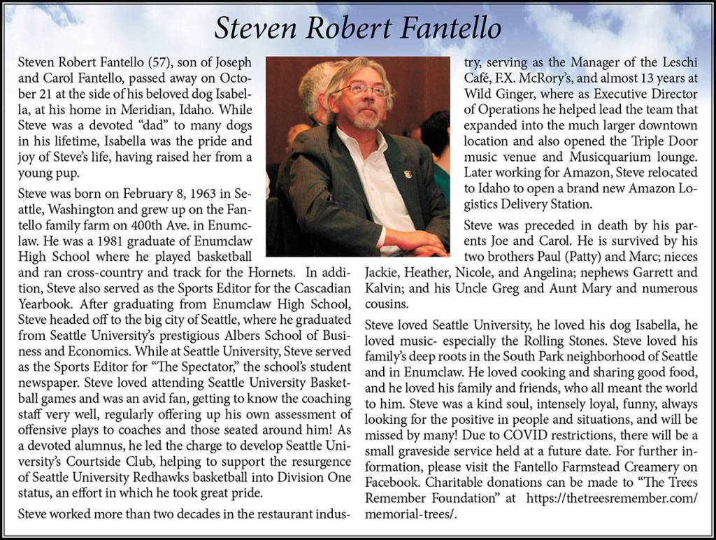 Steven Robert Fantello died Oct. 21, 2020, at the age of 57.