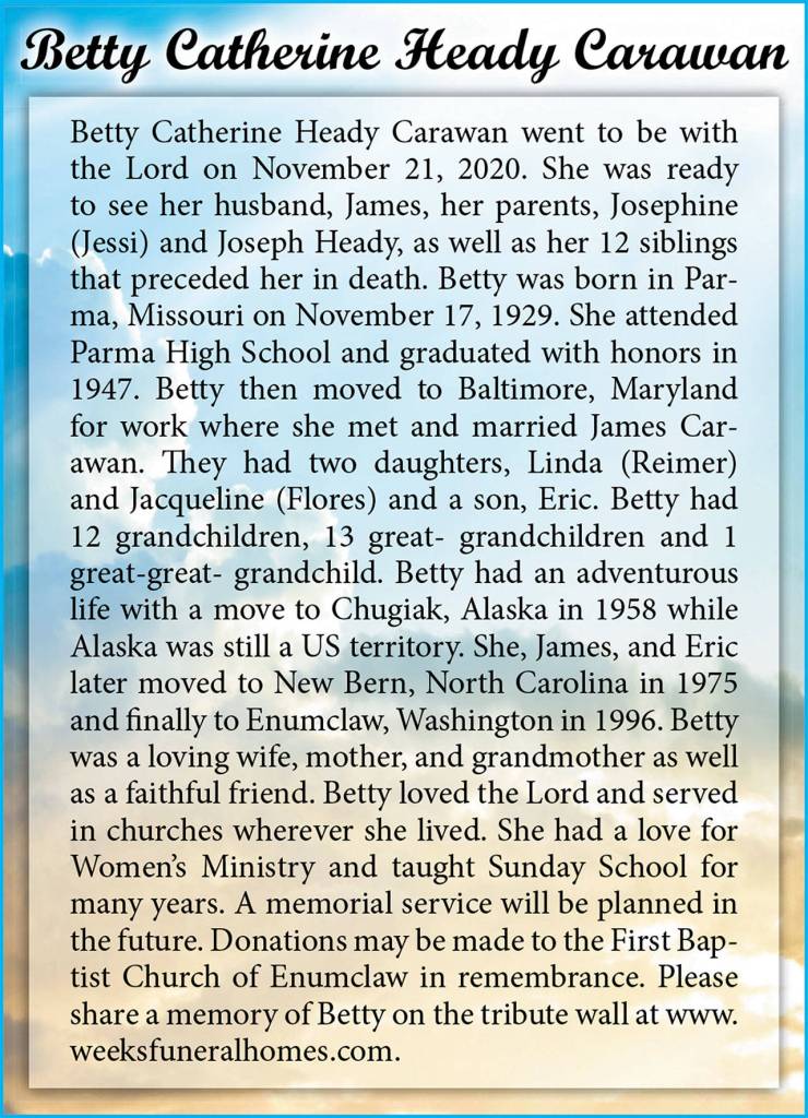Betty Catherine Heady Carawan died Nov. 21, 2020, at the age of 91.