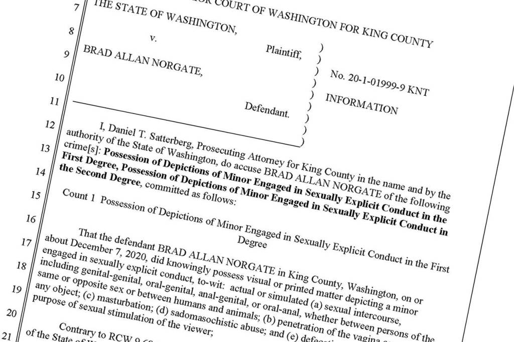 Norgate was officially charged Dec. 9 with two charges of possession of depictions of a minor engaged in sexually explicit conduct, one in the first degree and another in the second. According to the King County Prosecuting Office, his arraignment is scheduled for Dec. 17 at the Maleng Regional Justice Center in Kent; he is “expected to enter a plea.”