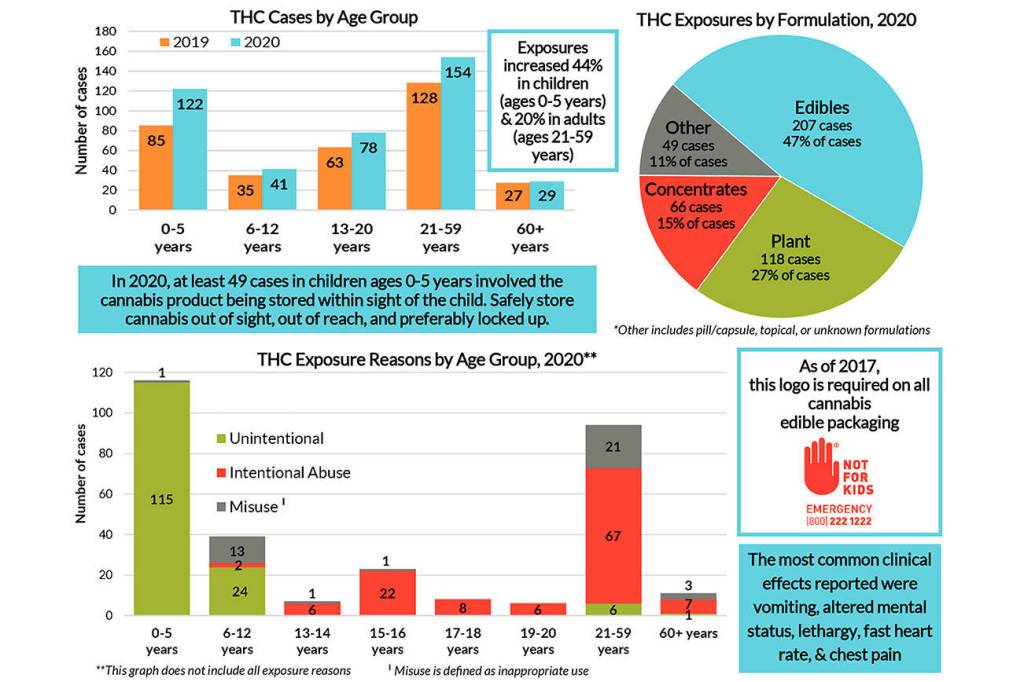 The poison center lists 115 of the exposures for kids ages 0 to 5 to be unintentional; the rest were undefined, with the exception of one child supposedly using a cannabis product inappropriately, albeit unintentionally.