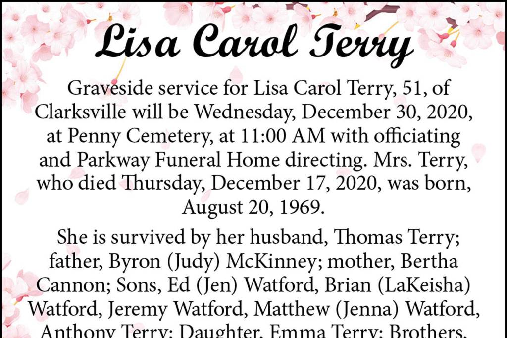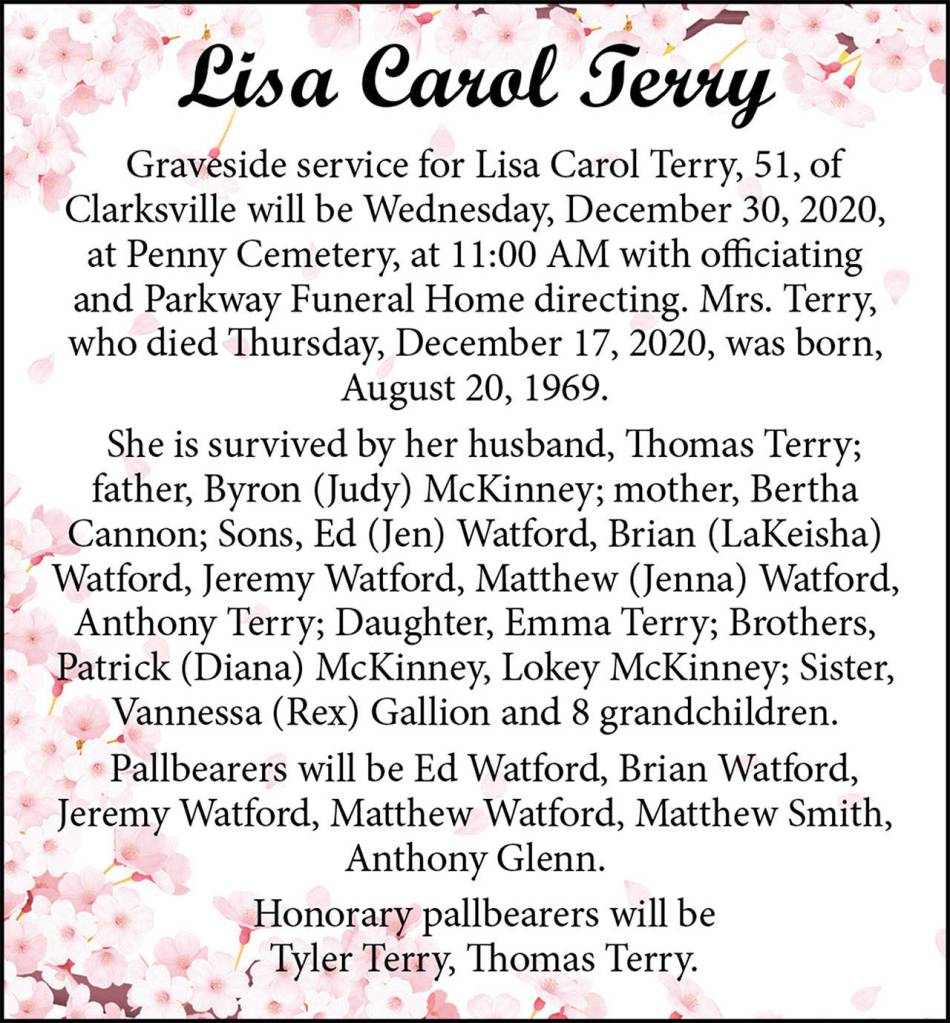 Lisa Carol Terry died Dec. 17, 2020, at the age of 51.