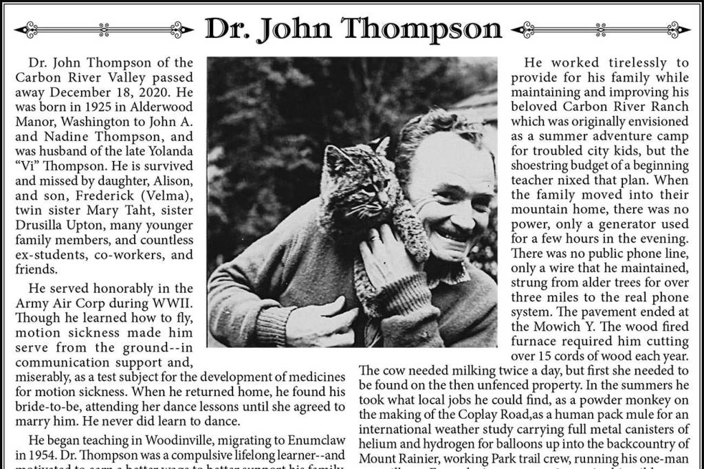 Dr. John Thompson died Dec. 18, 2020, at the age of 95.