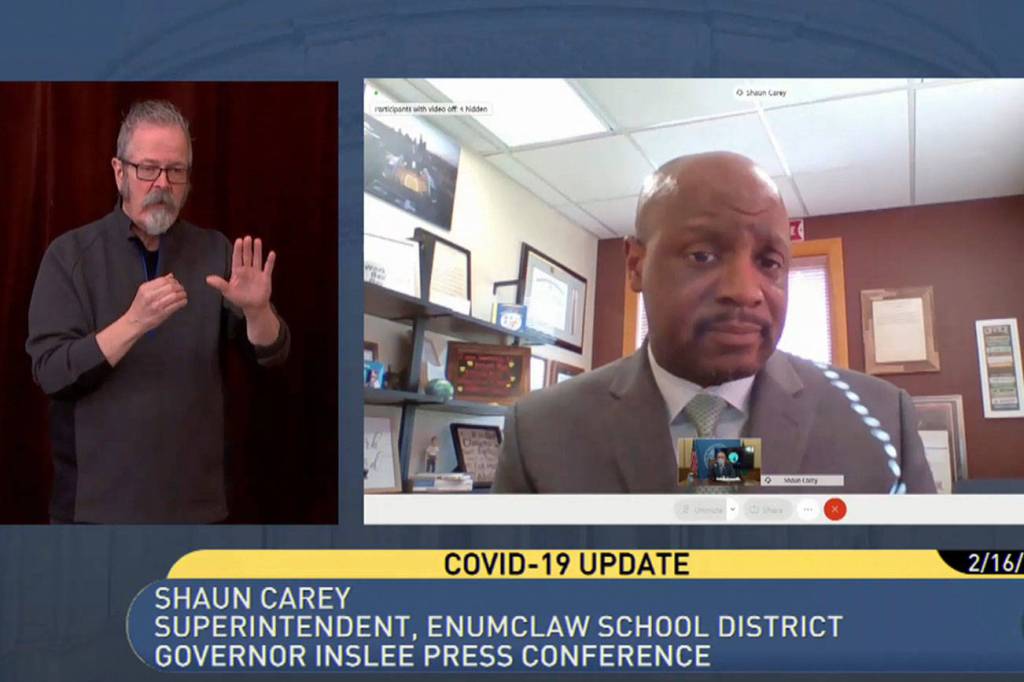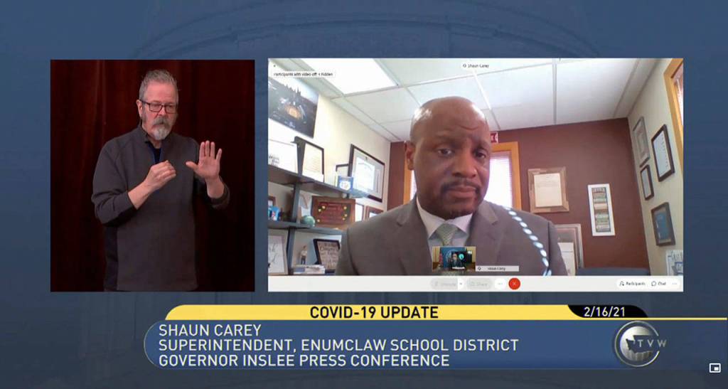 Enumclaw School District Superintendent Dr. Shaun Carey was in the state spotlight last week when he joined Gov. Jay Inslee to announce news regarding reopening schools across Washington.