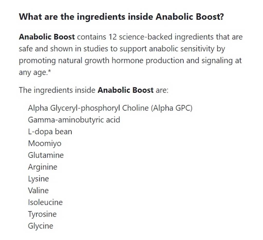 Anabolic Boost makers do not disclose the full list of ingredients or dosages upfront, making it impossible to compare Anabolic Boost to scientific studies or to competing for testosterone boosting supplements.