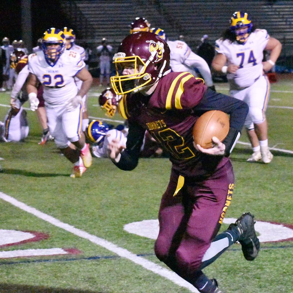Steilacoom took the lead midway through the second quarter with a touchdown toss, but the Hornets answered with a TD of their own. Royal Snider rumbled across the goal line from four years out to register the Hornets’ lone score.