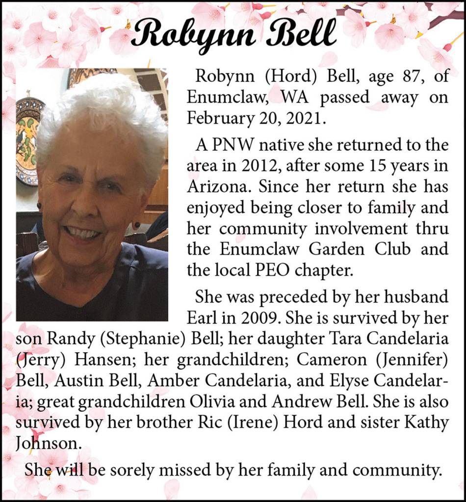 Robynn Bell died Feb. 20, 2021 at the age of 87.