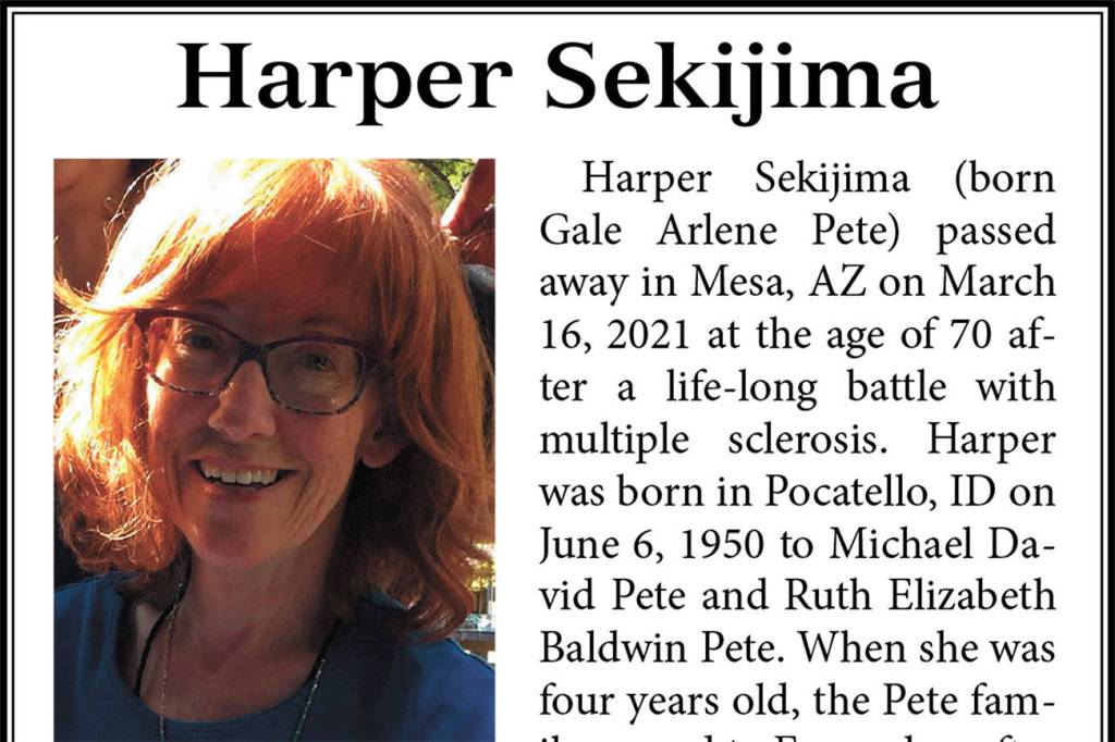 Harper Sekijima died march 16, 2020, at the age of 70.