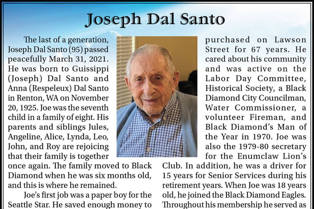 Joseph Dal Santo died March 31, 2021, at the age of 95.