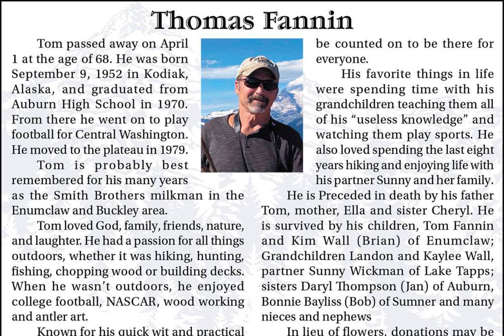 Thomas Fannin died April 1, 2021, at the age of 68.