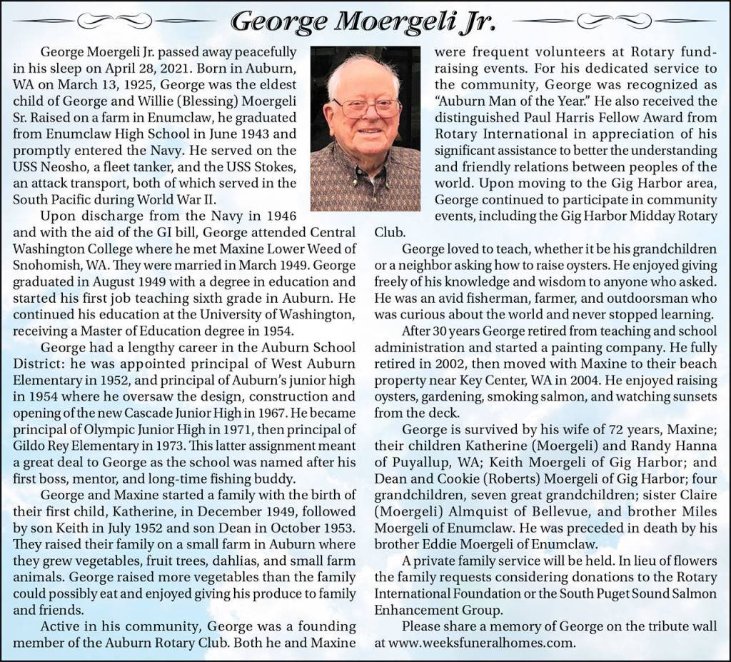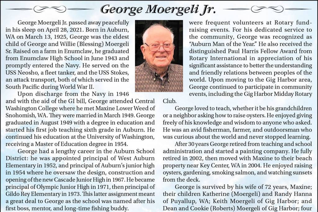 George Moergeli Jr. died April 28, 2021, at the age of 96.