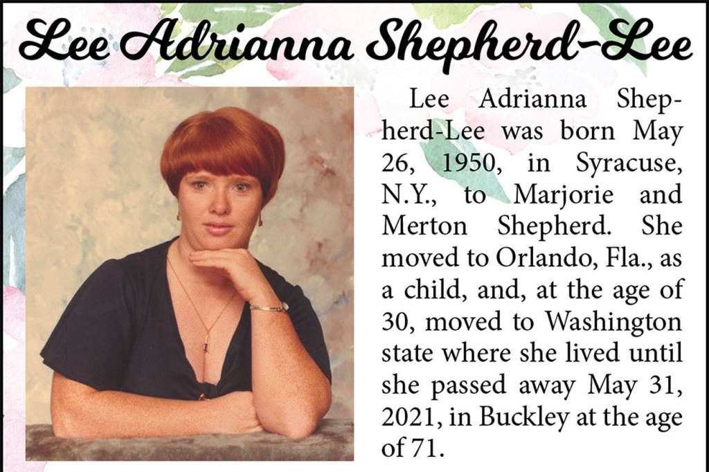 Lee Adrianna Shepherd-Lee died May 31, 2021, at the age of 71.