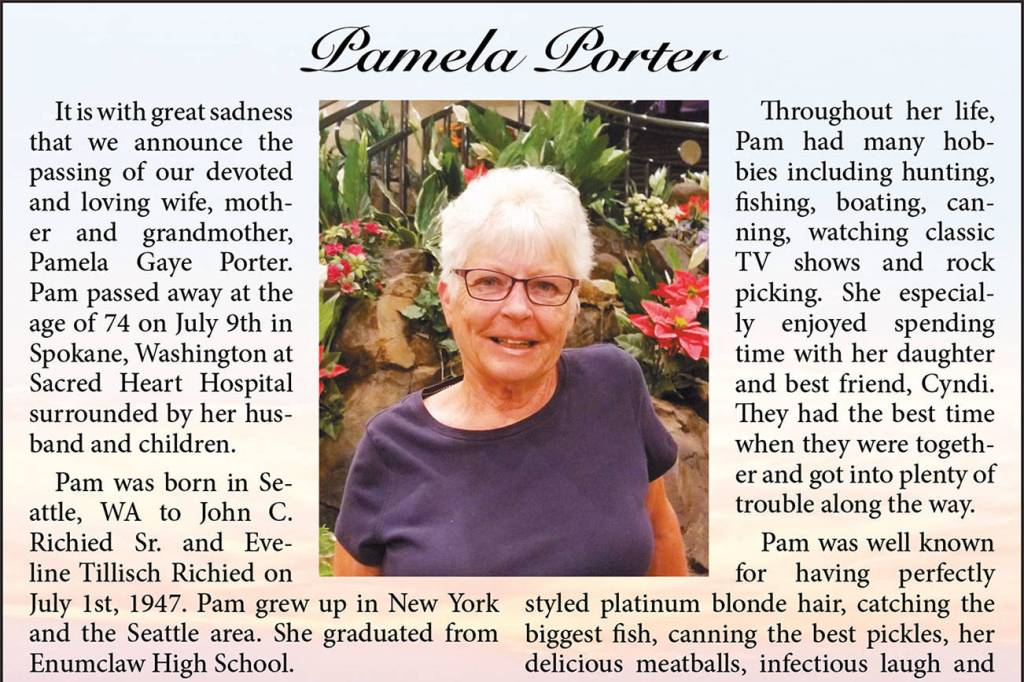 Pamela Gaye Porter died July 9, 2021 at the age of 74.