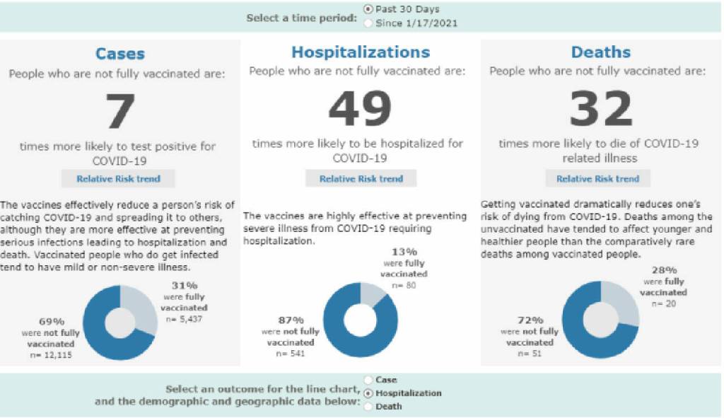 The transparent, regularly updated local data in the new dashboard reinforces that even during a COVID-19 surge, the vaccines are protecting vaccinated people from serious disease.