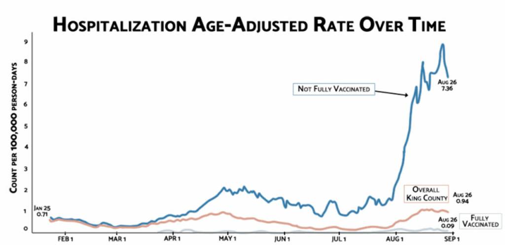 Since July, COVID-19 cases have increased rapidly in King County. The worsening outbreak is affecting all of us. And, people who are not fully vaccinated are getting seriously ill and dying at much higher rates than the vaccinated population.