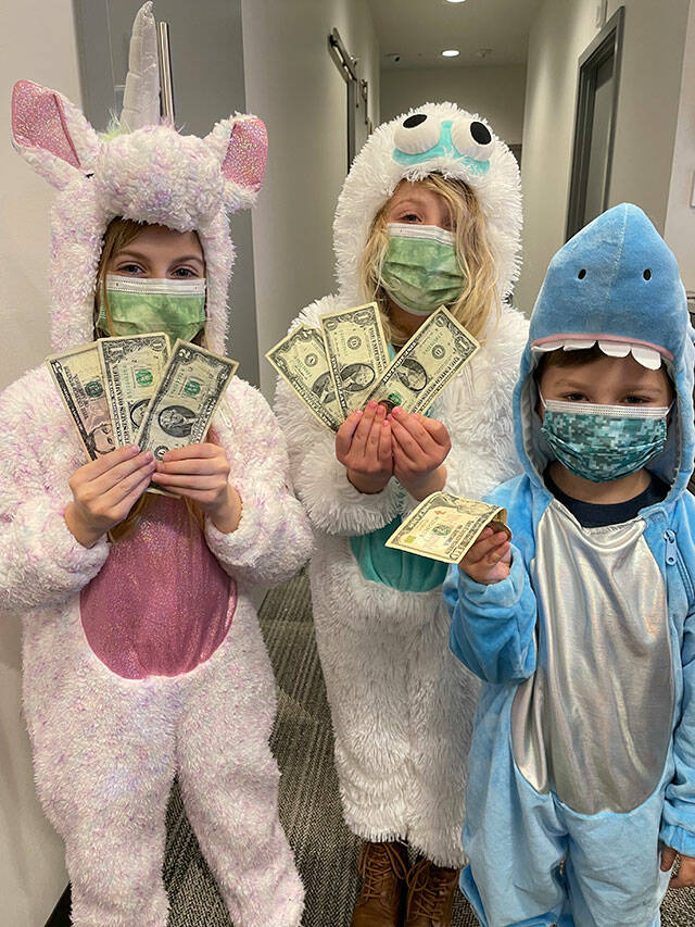 The candy was bought back at $2 a pound, plus an additional dollar for coming in costume and a further additional dollar if the kids donated cans of food; more than $4,500 was given to kids during this year’s buy-back event.