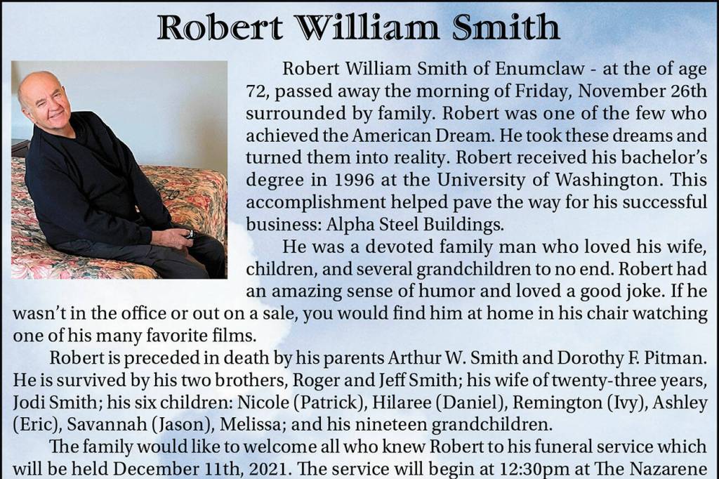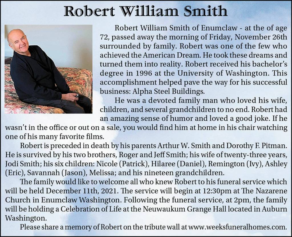 Robert William Smith died Nov. 26, 2021, at the age of 72.