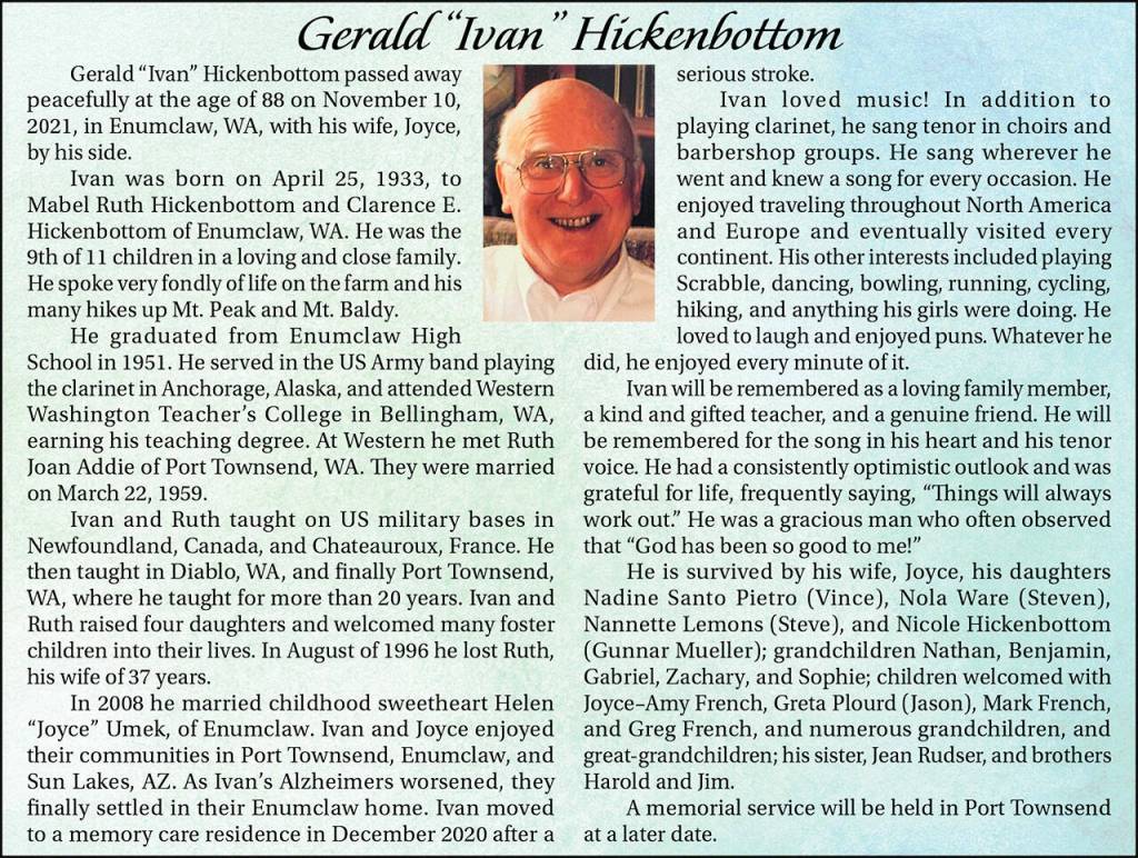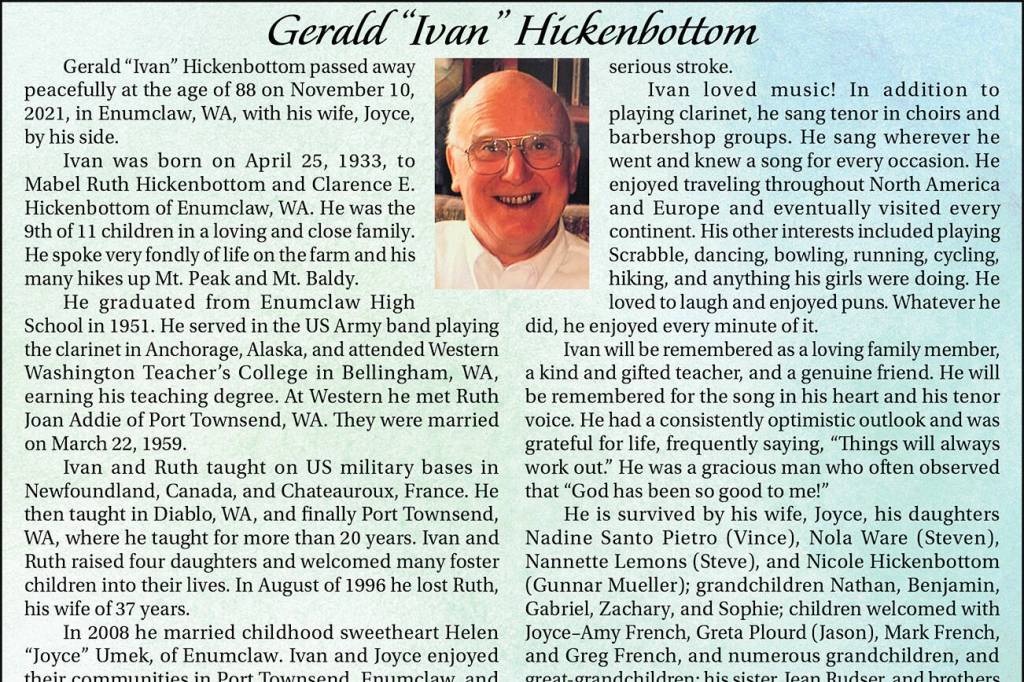 Gerald “Ivan” Hickenbottom died Nov. 10, 2021, at the age of 88.