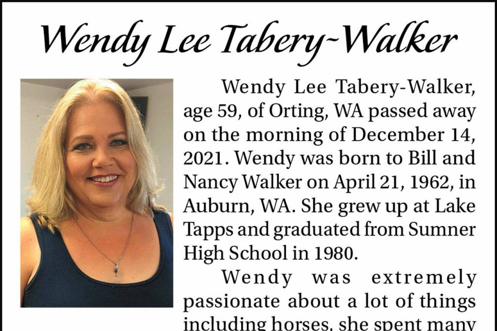Wendy Lee Tabery-Walker died Dec. 14, 2021, at the age of 59.