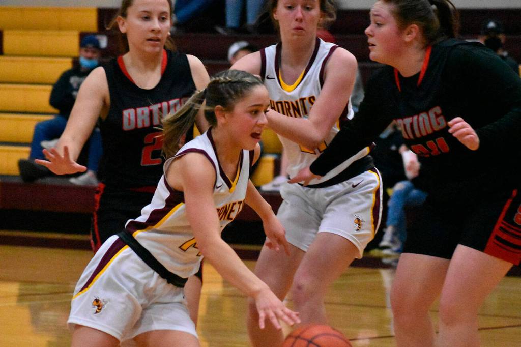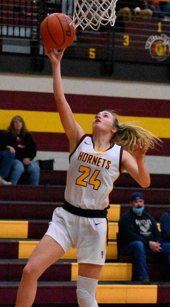 Enumclaw scoring: Bella Firnkoess 18, Gwyneth Harderson 13, Isabelle Couch 8, Rosie Penke 8, Ellie DeGroot 6, Sophia DeMarco 4, Hannah Penke 4, Natalie DeMarco 3, Kalee Swanson 2, Gabriella Martel 2.