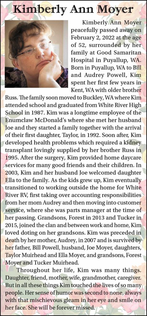 Kimberly Ann Moyer died Feb. 2, 2022.