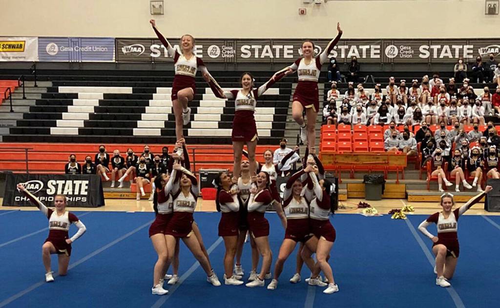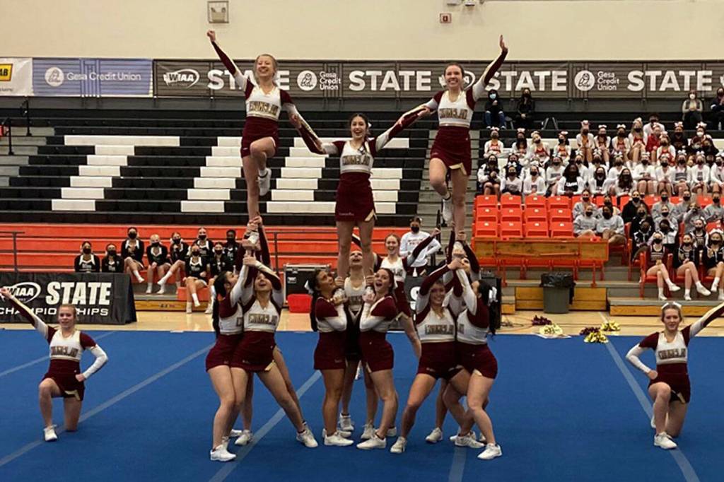 Despite a chaotic season and opponents from much bigger schools, Enumclaw put on a clinic at the state cheerleading championships this month, taking home two first-place trophies from the Feb. 4 and 5 tournament.