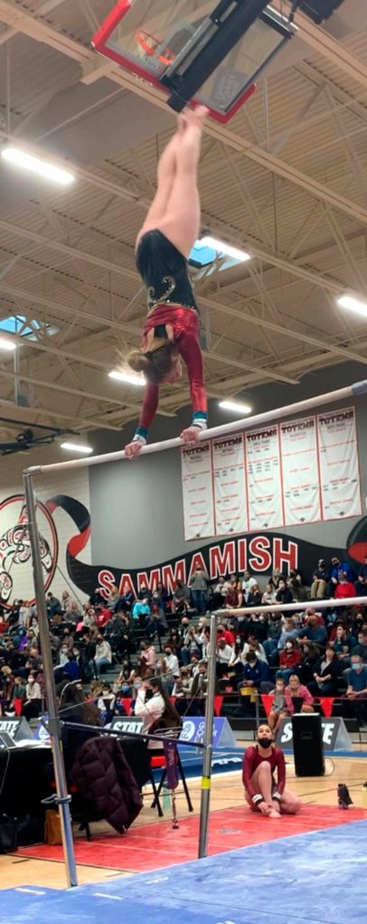 Staged at Sammamish High School, the event had athletes (including the EHS duo) competing in a combined 1A/2A/3A field on Friday, Feb. 25; gymnasts from the larger 4A schools displayed their skills the following day.