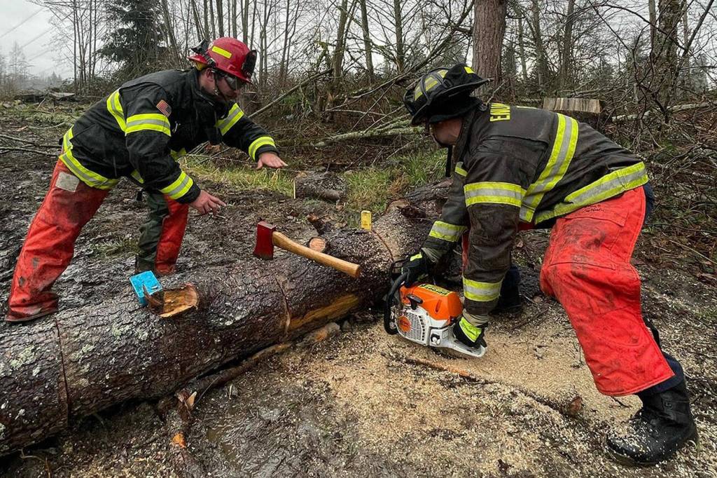 Enumclaw firefighters received chainsaw training with other South King Count department earlier this year. Photo courtesy Enumclaw Fire Department