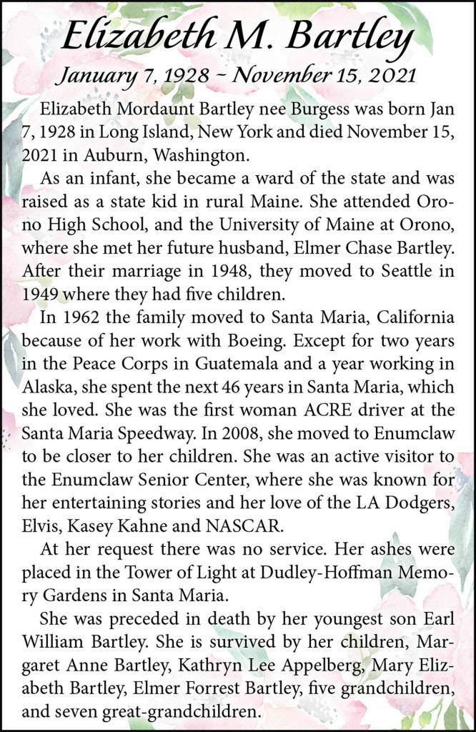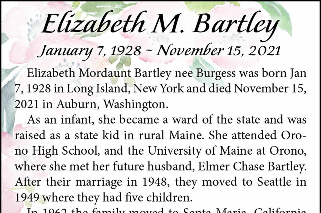 Elizabeth M. Bartley died Nov. 15, 2021, at the age of 93.