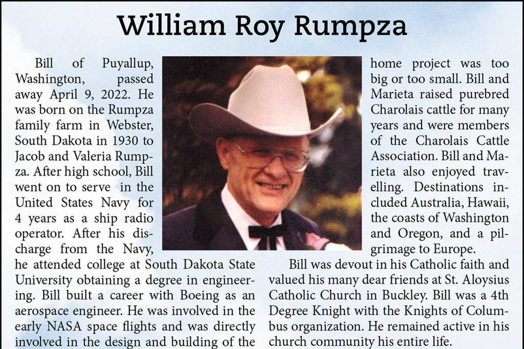 William Roy Rumpza died April 9, 2022.