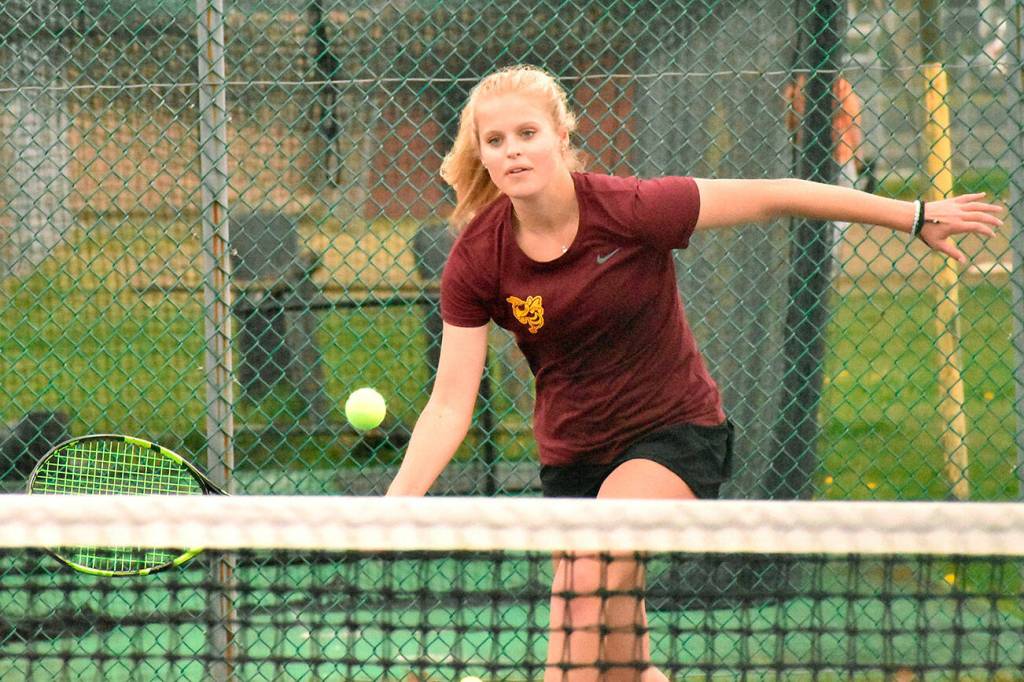 Playing in the toughest doubles slot, facing everyone’s No. 1 pair, are Enumclaw’s Sydney Scribner and Jasmine Dumontet. Despite the competition, they have managed a 5-3 record thus far.