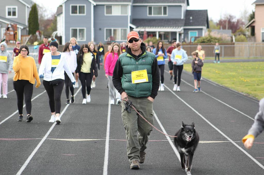 The Enumclaw community gathered on the high school’s track last Friday to run thirteen laps — or 5 kilometers — to help raise money for World Relief Seattle and goes to aid Ukraine refugees.