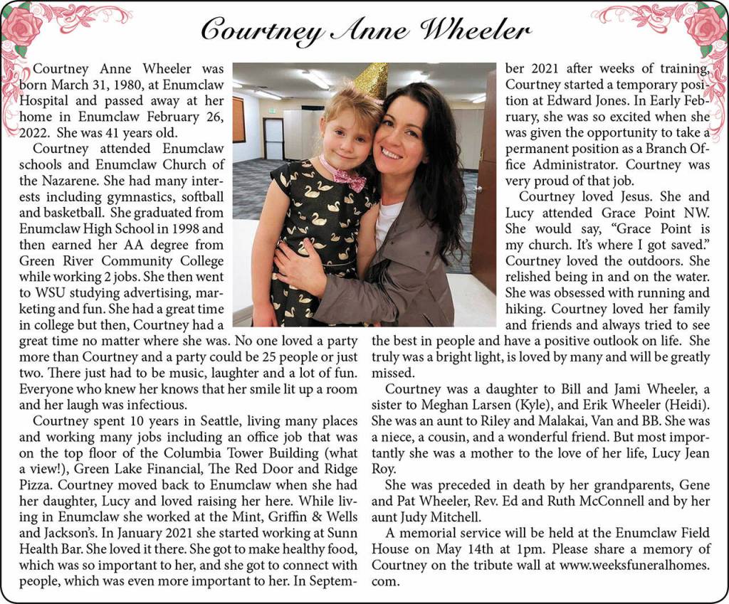 Courtney Anne Wheeler died Feb. 26, 2022, at the age of 41.