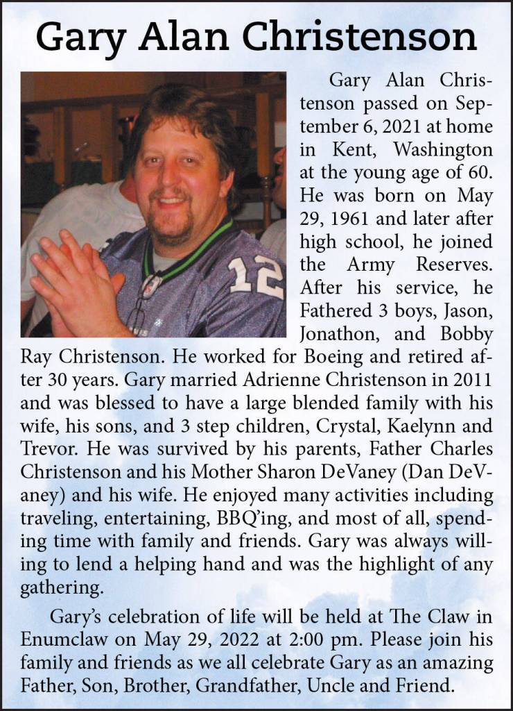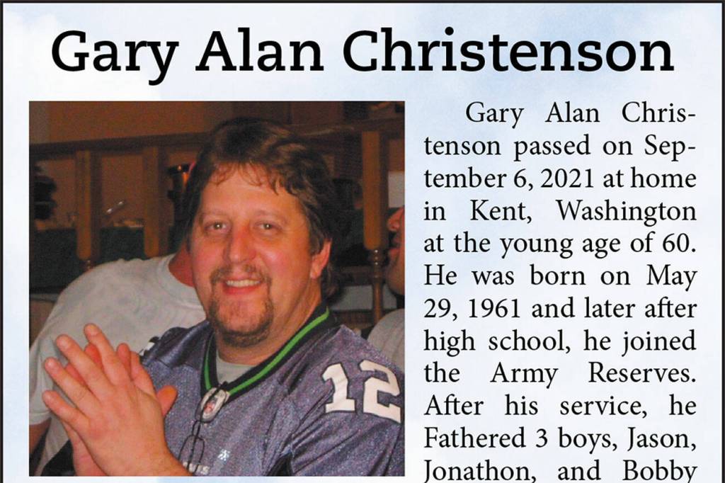 Gary Alan Christenson died September 6, 2021 at the age of 60.