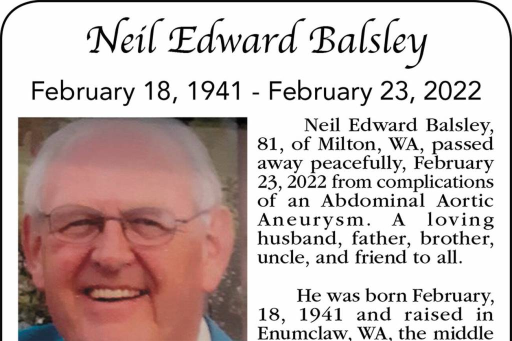 Neil Edward Balsley died Feb. 23, 2022, at the age of 81.