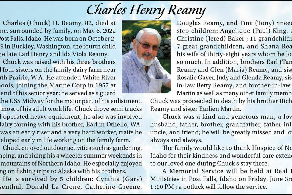Charles Henry Reamy died May 6, 2022, at the age of 82.