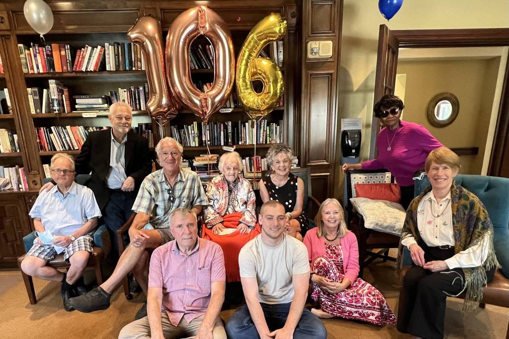 At Hilde’s age, putting on a birthday party is a production. The family arrives a couple days early to prepare, and remind her that her big day is coming up. (If you can wake up and remember what day it is at 106, hats off to you.) Then, on the Fourth, we and her excellent nurses help her pick an outfit, fix up her hair, and get her into her wheelchair so she can be taken to the gathering room at her senior living center.