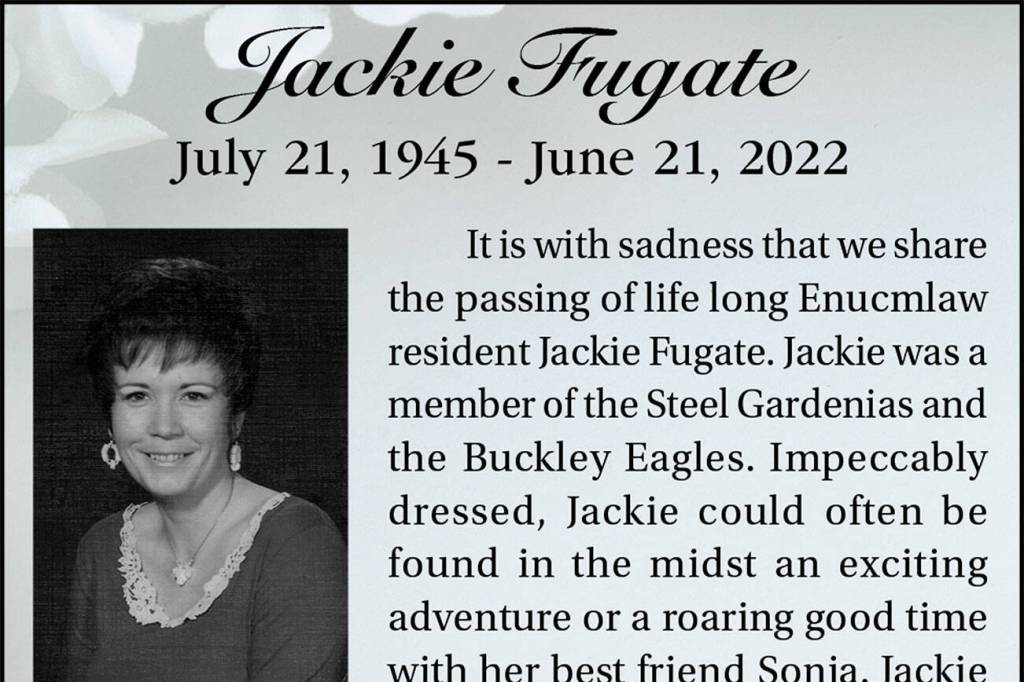 Jackie Fugate died June 21, 2022 at the age of 76.