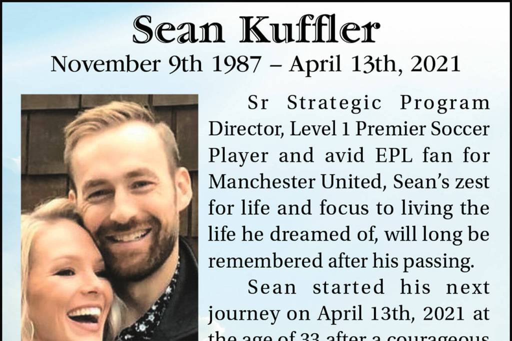 Sean Kuffler died April 13, 2021 at the age of 33.