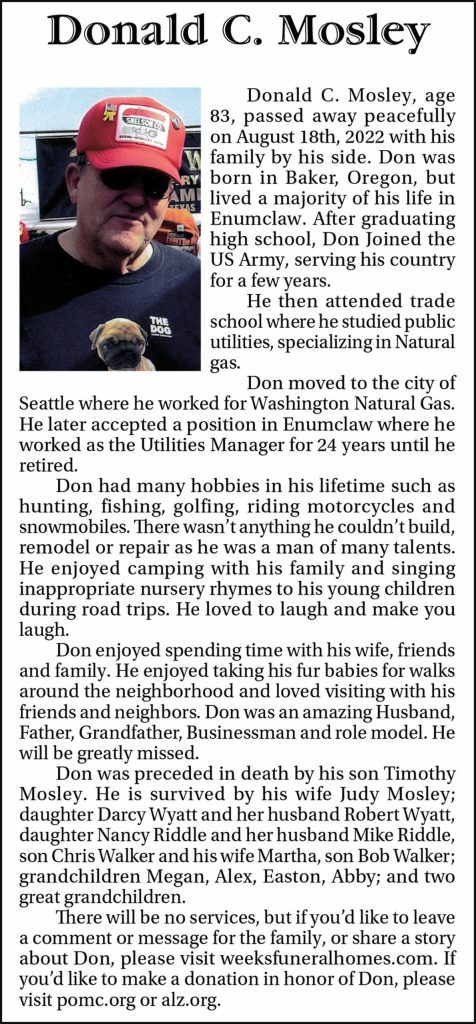 Donald C. Mosley died Aug. 18, 2022, at the age of 83.