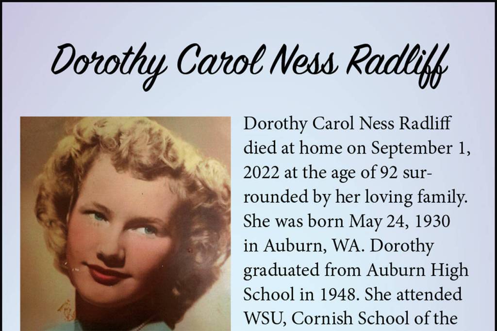Dorothy Carol Ness Radliff died Sept. 1, 2022, at the age of 92.