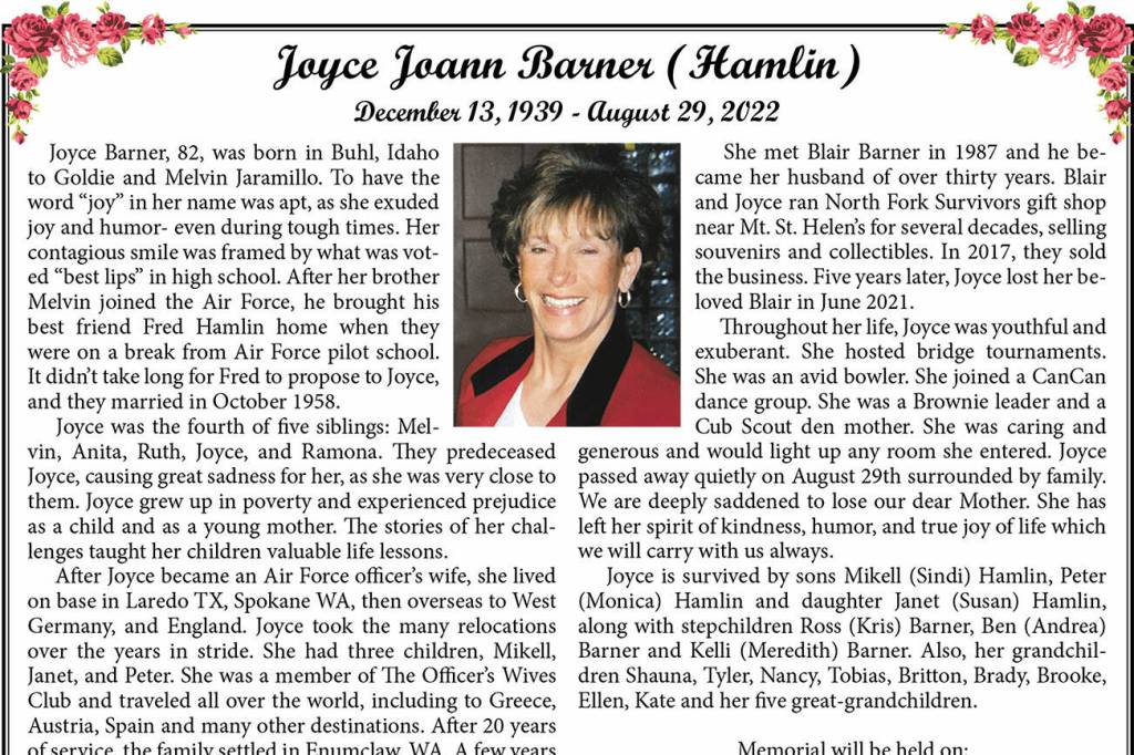 Joyce Joann Barner died Aug. 29, 2022, at the age of 82.