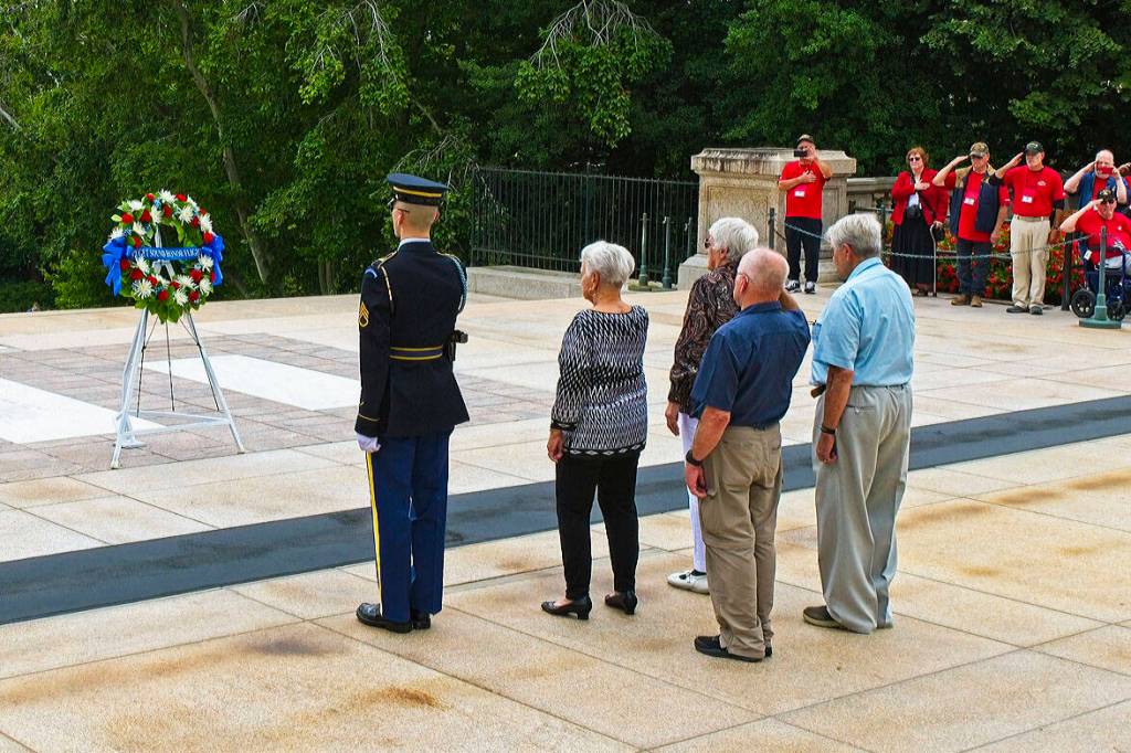 Dorothy assists in placing a wreath at the Tomb of the Unknown Soldier at Arlington National Cemetery; Ted Alger