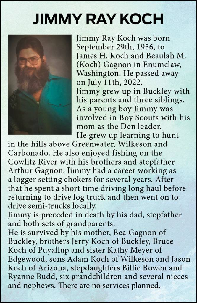 Jimmy Ray Koch died July 11, 2022, at the age of 65.